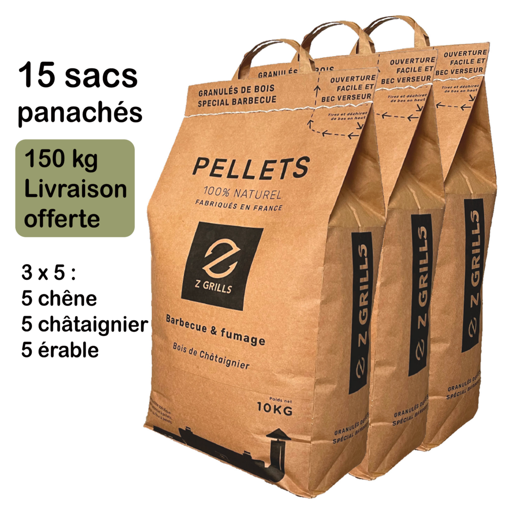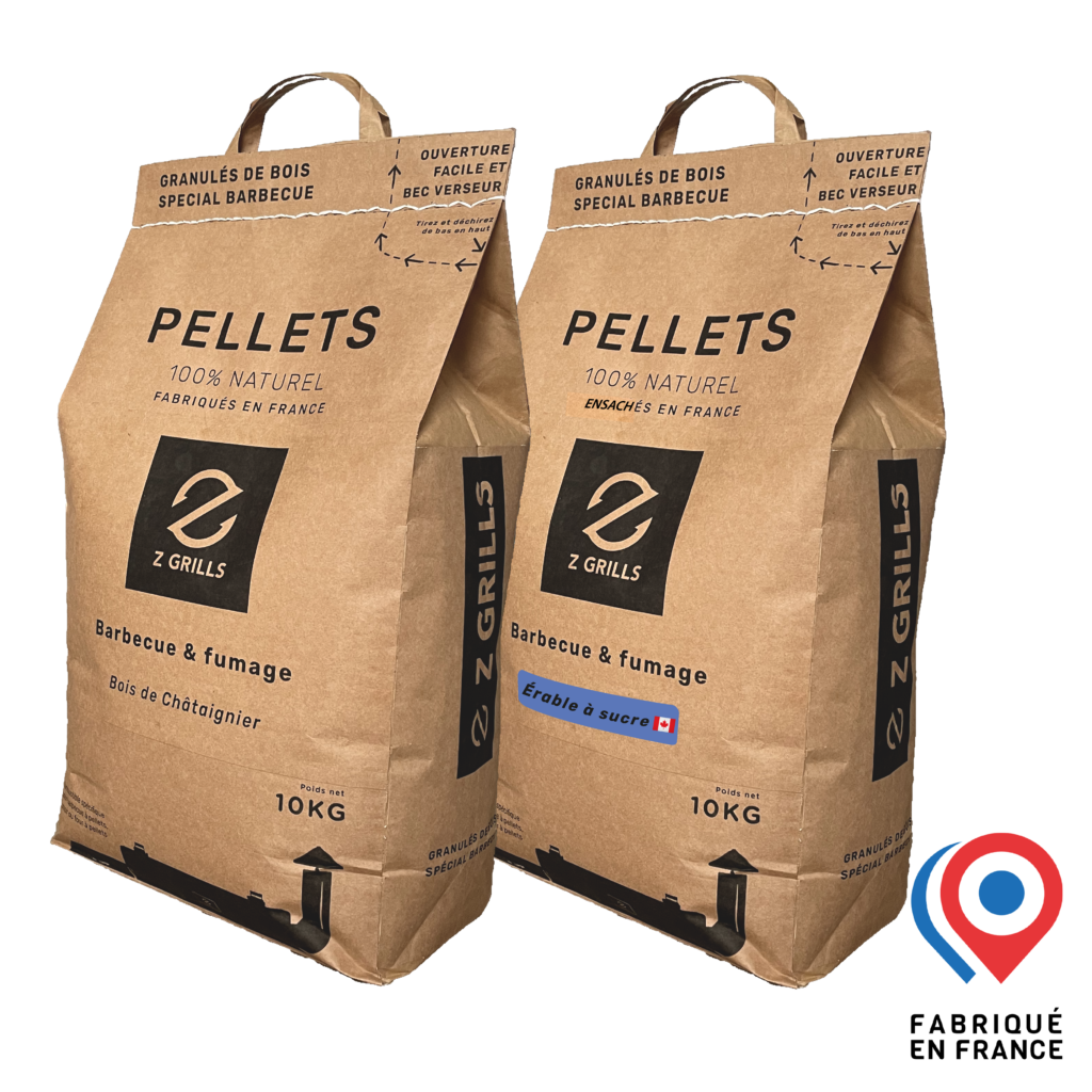 Tous les granulés de bois de QUALITÉ conçus pour les grils à granulés, les fumeurs de granulés ou les barbecues à granulés fonctionneront très bien dans les barbecues Z Grills Mais nous ne pouvons que vous recommander les granulés de la marque Z Grills qui ont été sélectionné pour leur qualité et leur parfaite combustion qui dégage des arômes et donnerons de la saveur à vos préparations.